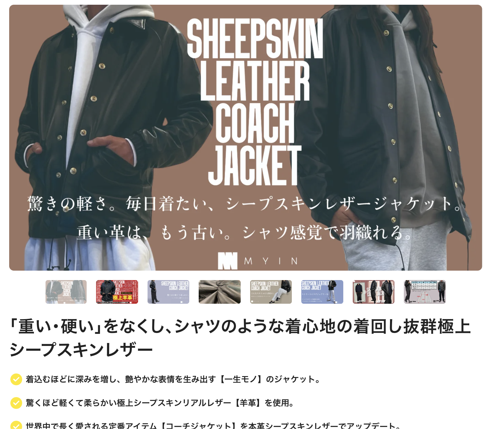 クラウドファンディングサイト「makuake」にて、MYINのシープスキンレザーを使用したコーチジャケットが公開中!